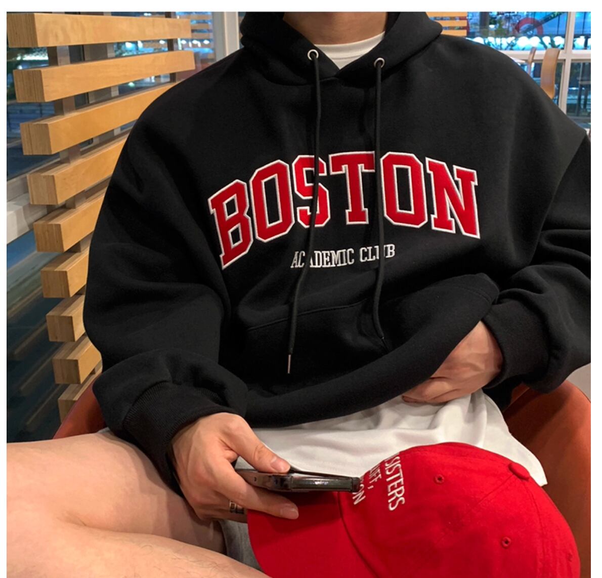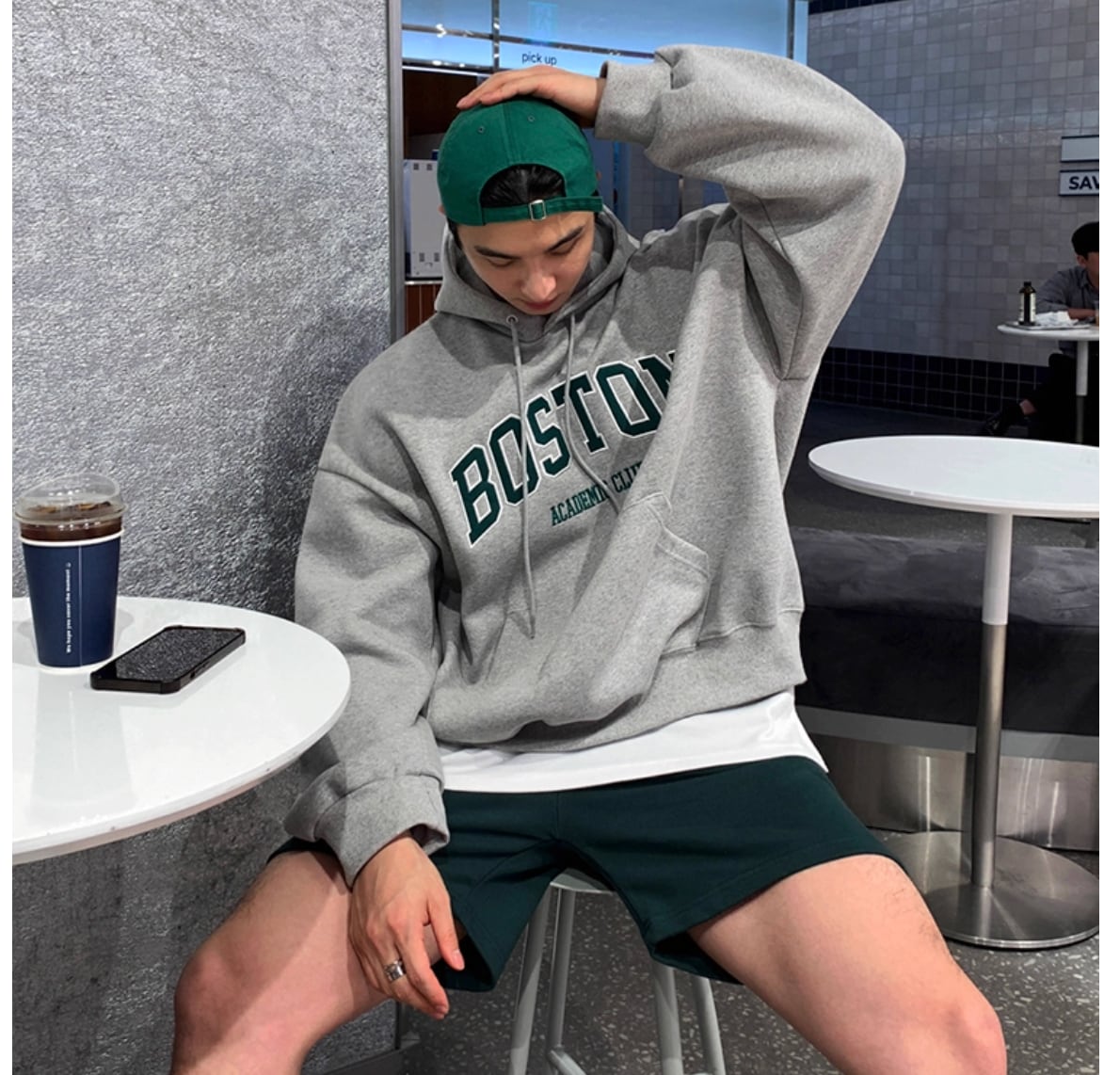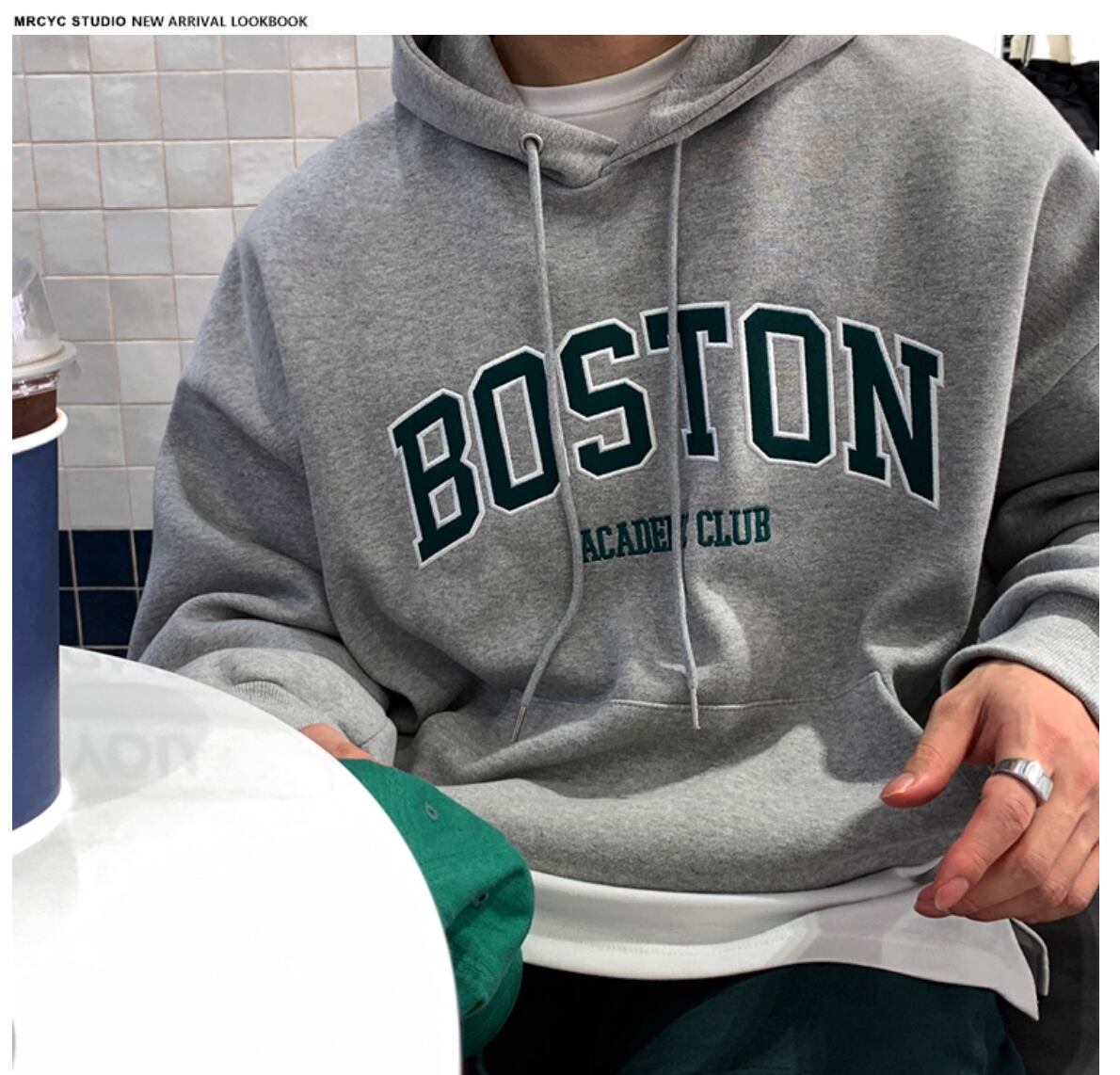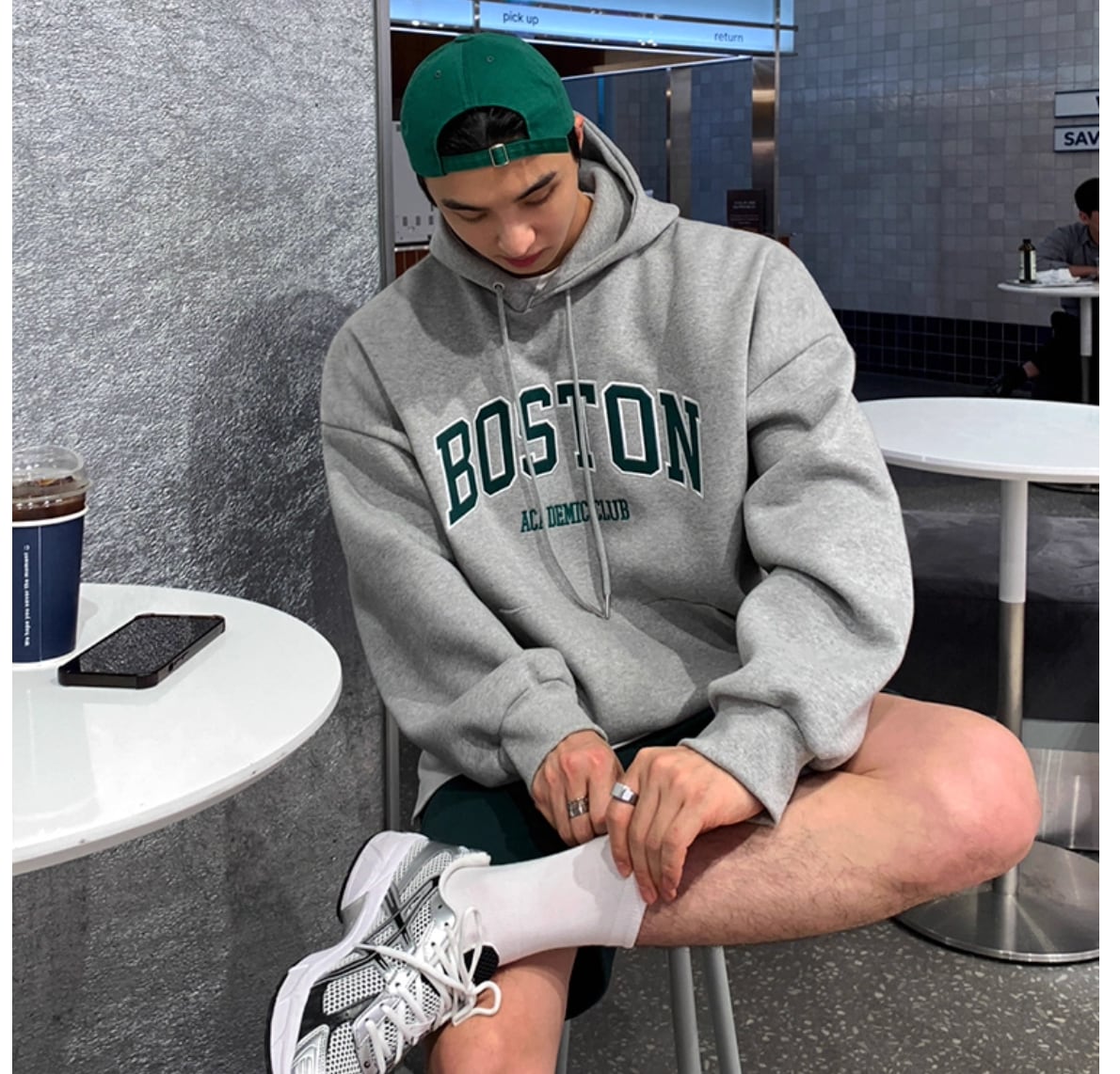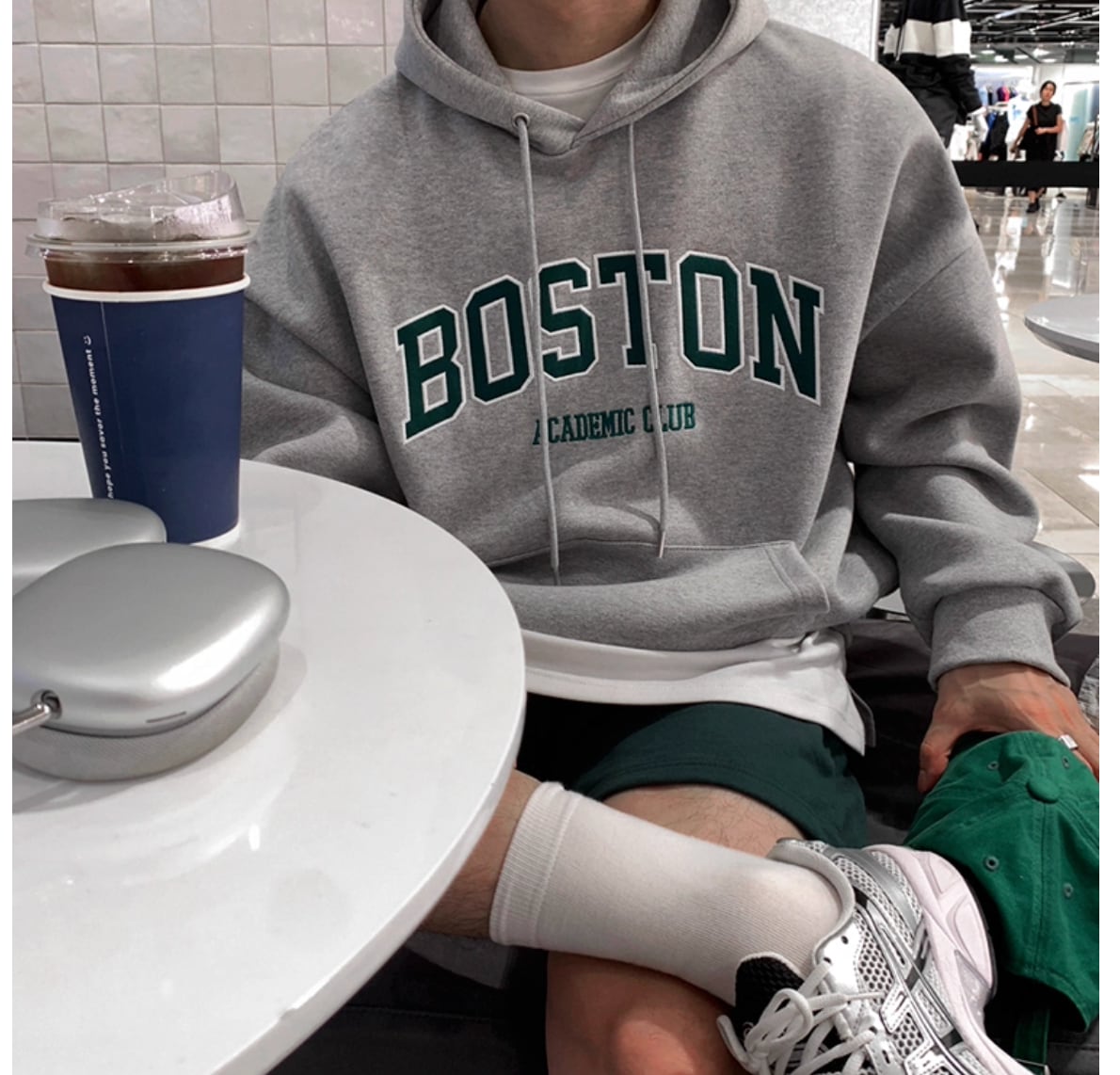 BOSTON 英字 プリント フード付き パーカー スウェット トップス グレー メンズファッション 韓国