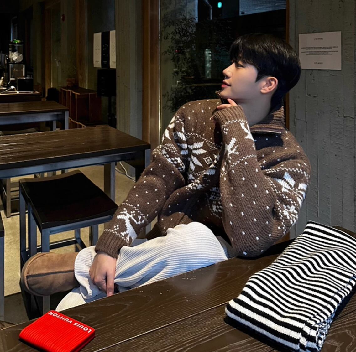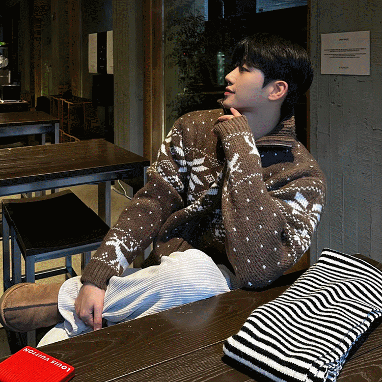ノルディック柄 ジッパー ニット トップス セーター メンズファッション 2色 韓国