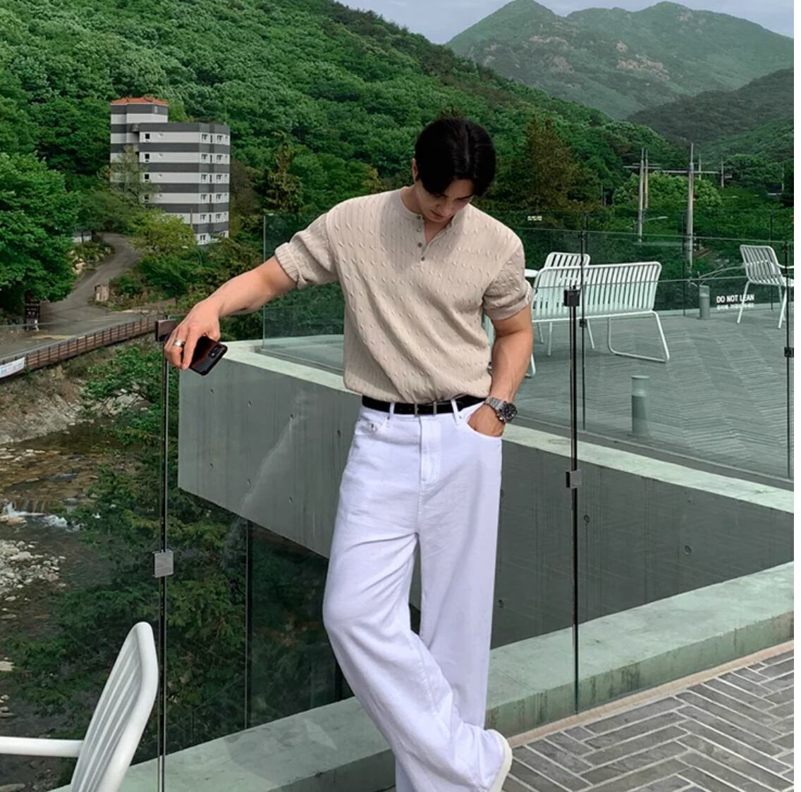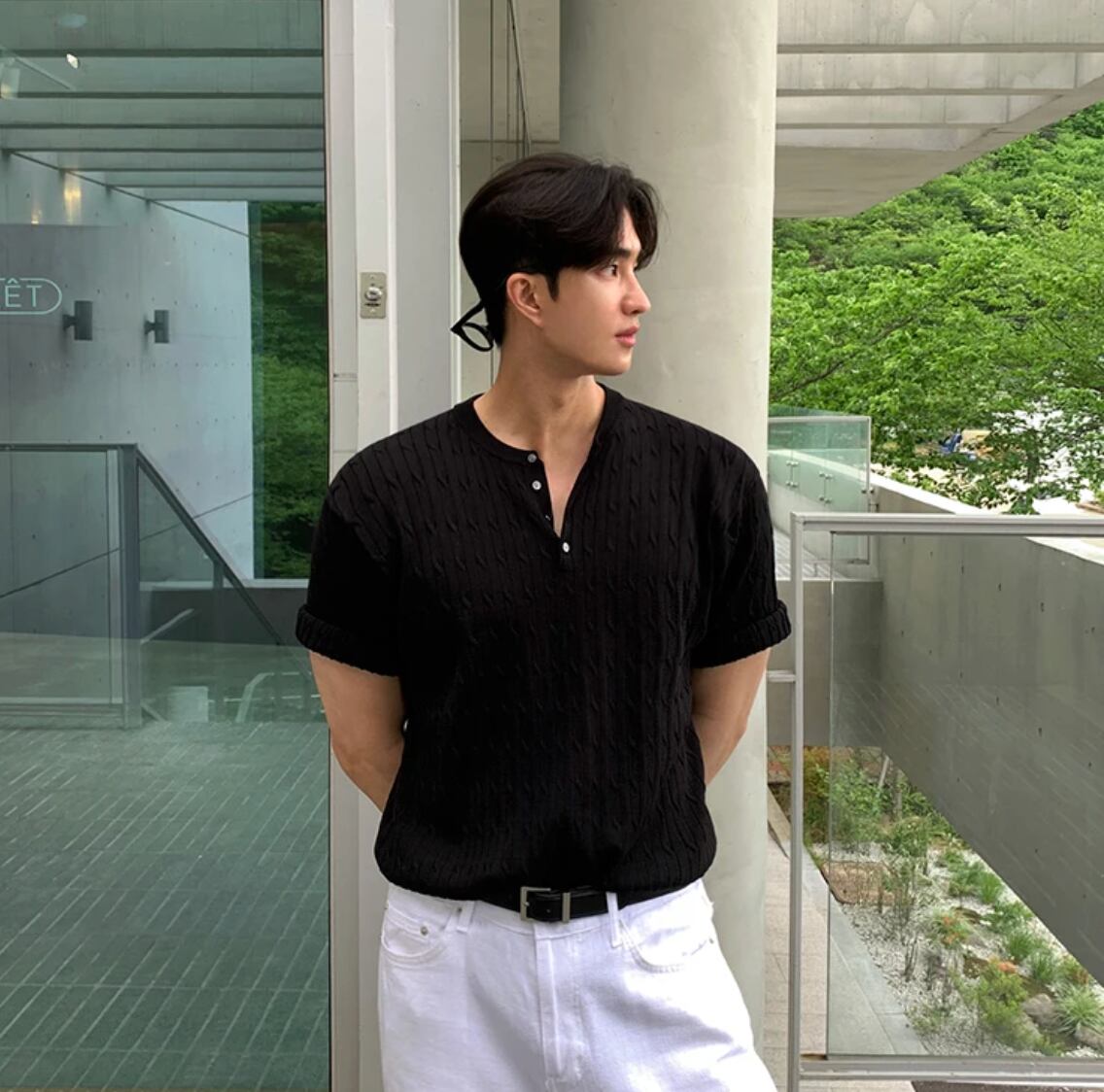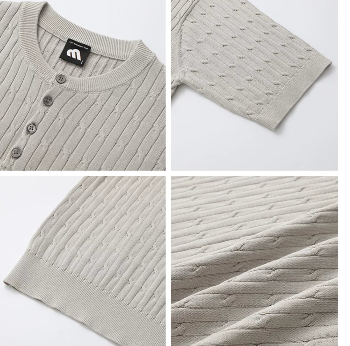 ■半袖 ケーブルニット トップス セーター メンズファッション 韓国 春 夏 ベージュ ブラック