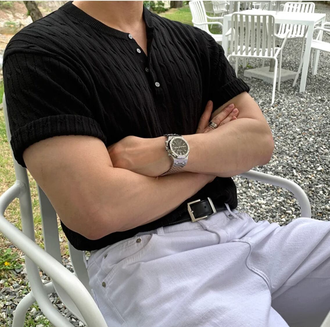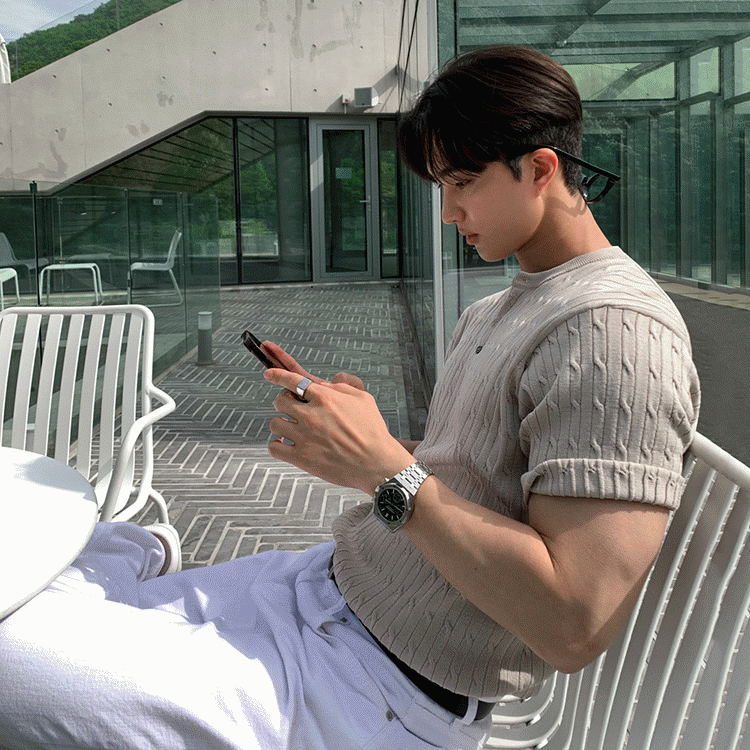 半袖 ケーブルニット トップス セーター メンズファッション 韓国 春 夏 ベージュ ブラック